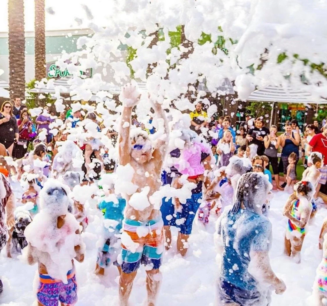 It’s a party that’s full of foam! Foam shoots out 30 feet from our commercial grade foam cannon!